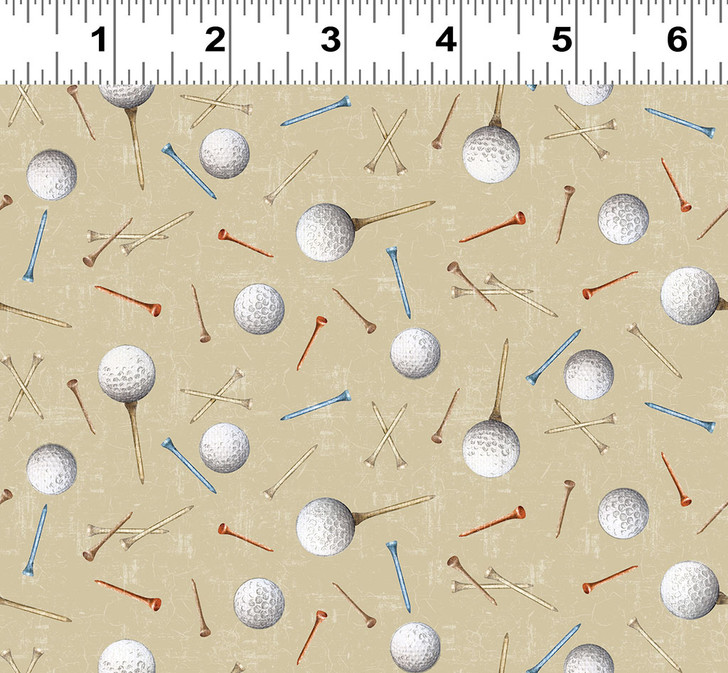This vibrant fabric features a playful design of digital golf balls and tees scattered across a rich blue background, perfect for adding a touch of sportiness to any project. The pattern is evenly distributed, providing a dynamic yet cohesive look that appeals to both golf enthusiasts and those looking for a unique fabric design. Ideal for quilting, apparel, or home décor, this cotton fabric offers excellent durability and a soft texture.