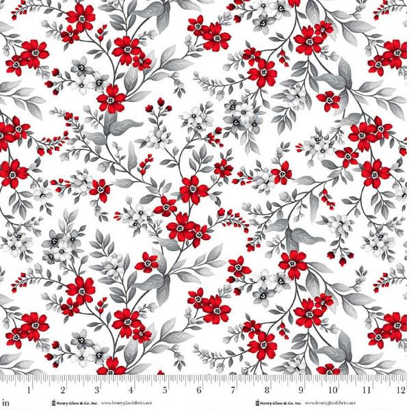 Henry Glass - Scarlet's Treasure - Floral Vine, White Red