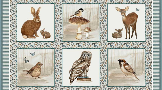 Whimsical Woods is a stunning group by Dawn Rosengren that will bring nature into your home. Beautiful birds, rabbits and deer greet you as you walk through the forest. The peaceful tune of birds chirping is a soothing sound as you spot mushrooms. The soft blue and brown color palette is a great addition to your home. Create decorative pillows with the block panel. Make the book panel so you have something to read to little ones that visit. Bring some friendly forest critters into your next project with Whimsical Woods.