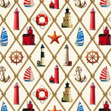 Dive into a world of maritime magic with this enchanting assortment of 100% cotton fabrics, perfect for crafting coastal-inspired quilts, upholstery accents, or whimsical home decor projects. Featuring a delightful array of nautical patterns, from majestic lighthouses standing tall against starry skies to billowing sails on serene seas, playful boats gliding through waves, and patriotic stars and stripes in vibrant blues, crisp whites, and bold reds. The soft, woven texture ensures easy handling and durability, while the varied motifs—like towering beacons and flag-adorned towers—add a touch of seaside adventure to every creation. Ideal for sewers and designers seeking high-quality, versatile yardage that captures the essence of ocean breezes and lighthouse glows, this collection sparks endless inspiration for your next fabric endeavor.