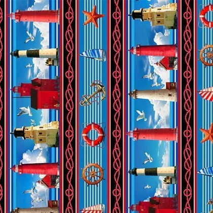 Dive into a world of maritime magic with this enchanting assortment of 100% cotton fabrics, perfect for crafting coastal-inspired quilts, upholstery accents, or whimsical home decor projects. Featuring a delightful array of nautical patterns, from majestic lighthouses standing tall against starry skies to billowing sails on serene seas, playful boats gliding through waves, and patriotic stars and stripes in vibrant blues, crisp whites, and bold reds. The soft, woven texture ensures easy handling and durability, while the varied motifs—like towering beacons and flag-adorned towers—add a touch of seaside adventure to every creation. Ideal for sewers and designers seeking high-quality, versatile yardage that captures the essence of ocean breezes and lighthouse glows, this collection sparks endless inspiration for your next fabric endeavor.
