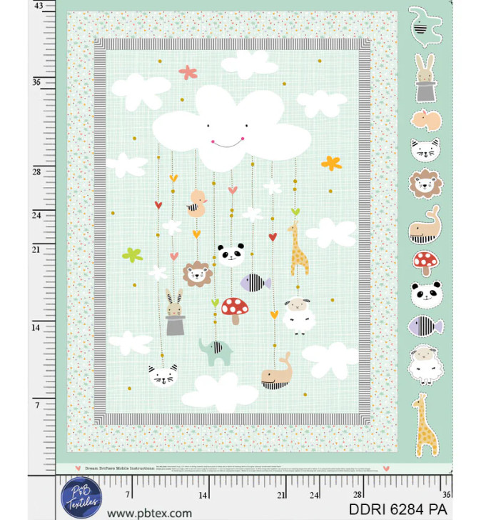 Dream Drifters by Turnowsky drifts softly into a world of sweet slumber and gentle imagination. Playful animals float among clouds, stars, and hearts in soothing shades of mint, gray, and soft coral, creating a serene nursery palette. The whimsical illustrations—featuring lions, pandas, giraffes, and more—capture the innocence of dreams and childhood wonder. Perfect for quilts, baby bedding, and décor, Dream Drifters brings comfort, charm, and a touch of magic to every stitch.