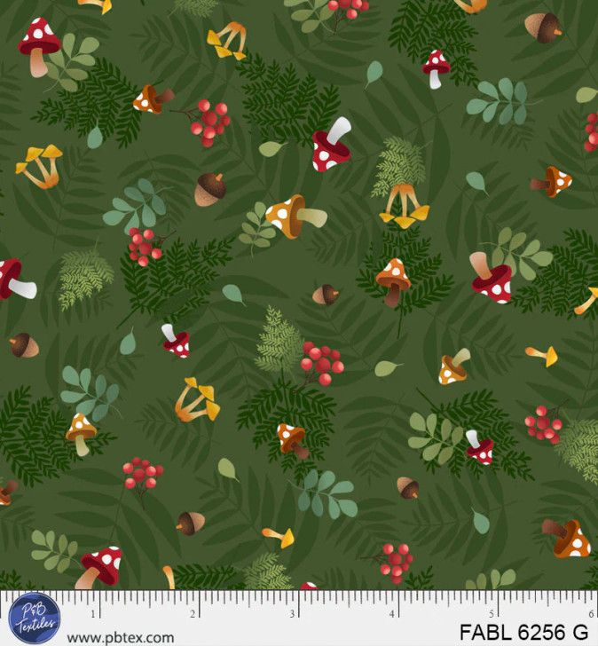 P & B Textiles - Fablewood - Mushroom Toss, Green
