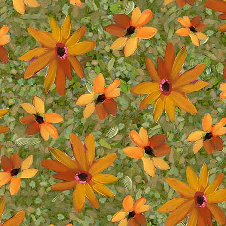 Quilting Treasures - Joyful Garden - Gerber Daisy, Green