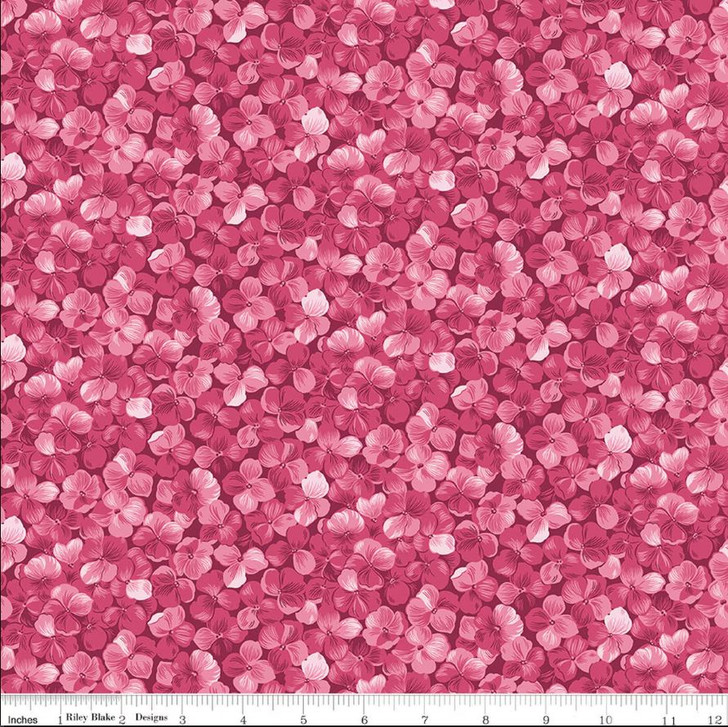 Riley Blake - Hydrangeas in the Garden - Allover Floral, Raspberry Pearl