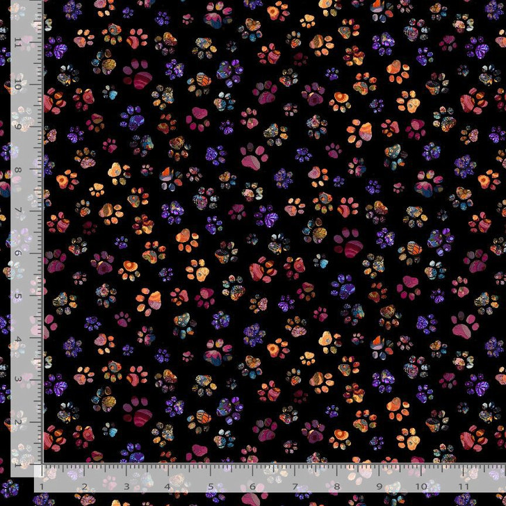 Timeless Treasures - Calico Cat - Floral Paw Prints, Black