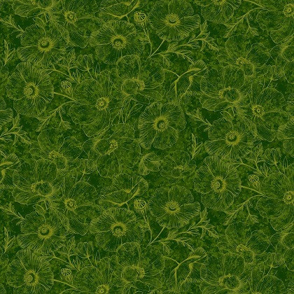 Timeless Treasures - Poppy Passion - Tonal Poppies, Green