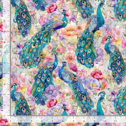Timeless Treasures - Wild Beauty - Peacocks On Floral, Multi