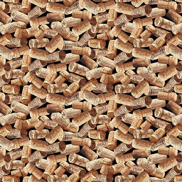 Indulge in the rustic charm of this captivating wine cork fabric, featuring a lifelike pile of scattered corks in warm beige and brown tones against a deep black background. Each cork boasts authentic-looking labels with names like Merlot, Chardonnay, and Cabernet, evoking the essence of a well-stocked wine cellar or cozy vineyard gathering. The detailed print captures the textured, cylindrical shapes and subtle variations in cork hues, making it an ideal choice for wine-themed projects. Perfect for crafting unique aprons, placemats, or tote bags that celebrate oenophile passions, this soft cotton material also shines in upholstery for bar stools or accent pillows, adding a sophisticated, conversation-starting touch to home décor Whether you're sewing quilts for wine lovers or designing custom kitchen linens, this versatile wine cork print fabric brings a pop of thematic elegance to any creation, blending durability with delightful visual appeal.