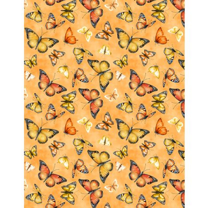 Wilmington Prints - Dahlia Botanica - Butterflies, Orange