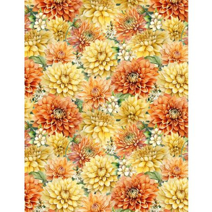 Wilmington Prints - Dahlia Botanica - Packed Floral, Yellow/Orange