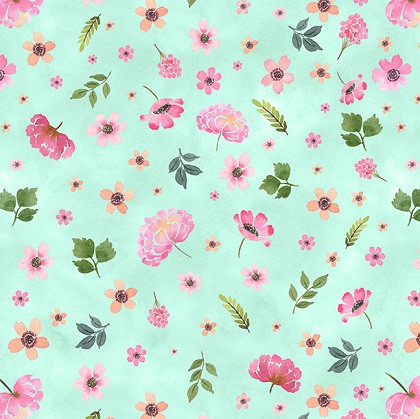 Wilmington Prints - Peony Blossoms - Tossed Flowers, Teal