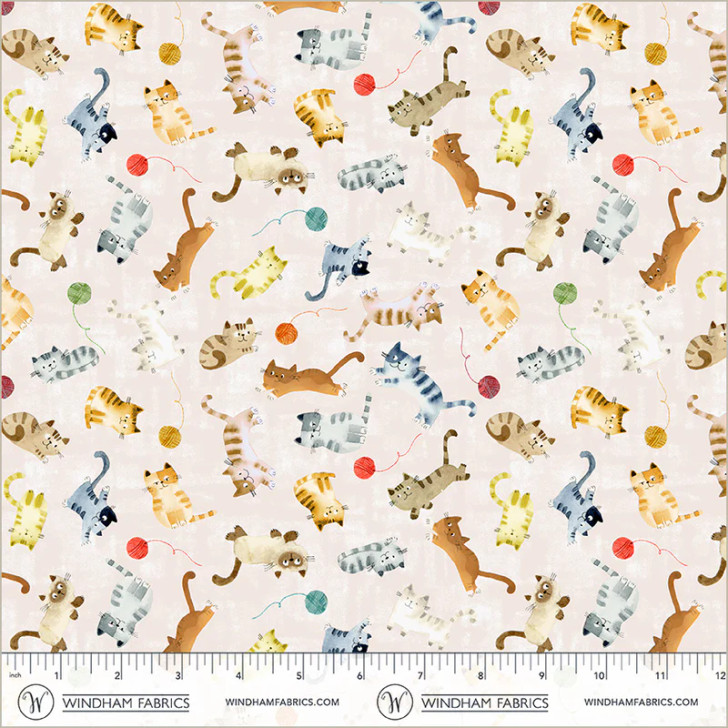 Windham Fabrics - Cats Around Town - Playful Companions, Ivory